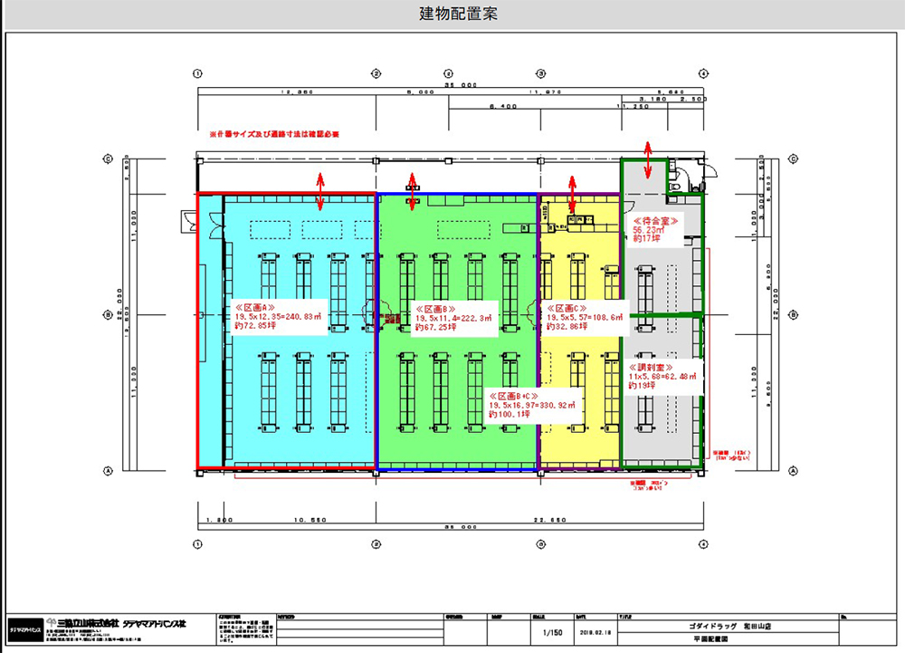 | 仮に2区画で想定しています。建築面積・家賃・保証金はご相談に応じますので、お問い合わせください。 |