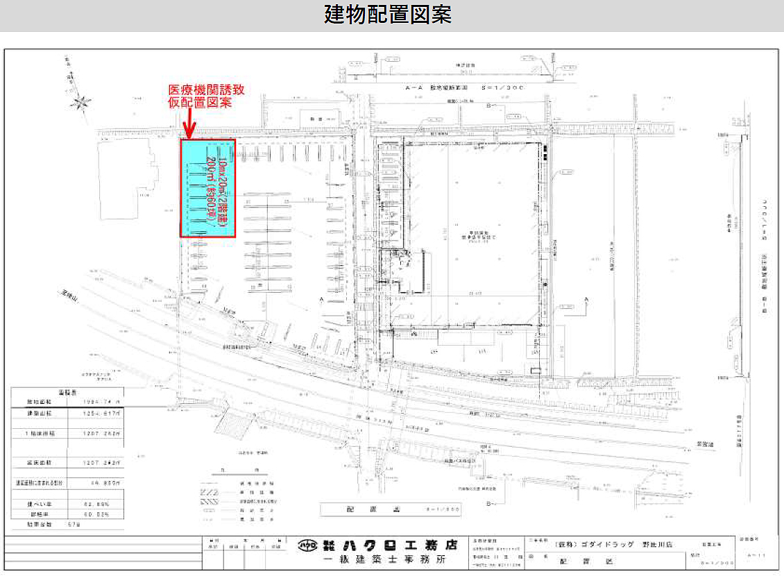 | 2階建て2診療で想定しています。建築面積・家賃・保証金はご相談に応じますので、お問い合わせください。 |