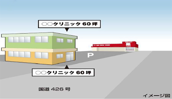 | 2階建て2診療で想定しています。建築面積・家賃・保証金はご相談に応じますので、お問い合わせください。 |